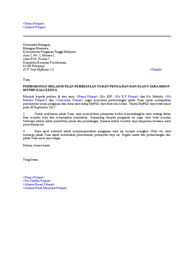 Template Surat Mohon Lanjutan Myphd Pelajar 1 Pdf